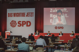 Bei einem überwiegend digital durchgeführten Parteitag hat die SPD Baden-Württemberg erfolgreich ihre Landesliste für die Bundestagswahl 2021 aufgestellt. Der SPD-Landesvorstand und die Bundestagsnominierten hatten dabei die Möglichkeit unter strengen Hygiene-Auflagen und nach einem Corona-Test in der EWS-Arena in Göppingen vor Ort zu sein, die 320 Delegierten haben elektronisch von zuhause aus über die 36 Listenplätze abgestimmt.