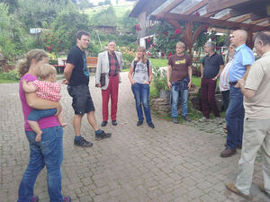 Man muss es so sagen, es ist eines der Privilegien des Kreisvorstands, dass er sich in regelmäßigen Abständen die besten Orte des Landkreises ansehen darf. Dazu zählt an einem lauen Sommerabend ganz bestimmt auch der Biohof von Simon und Nadine Zimmermann in Münstertal.