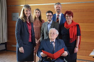 Vor kurzem hat sich der Eintritt des bedeutenden Staatsrechtlers und Rechtsphilosophen Ernst-Wolfgang Böckenförde in die Sozialdemokratische Partei Deutschlands zum 50 Mal gejährt. Grund genug für eine Feierstunde zu Ehren des treuen Parteimitglieds. Der Ortsverein Hexental lud deshalb ins Merzhausener Rathaus und die Vorsitzende Birte Könnecke konnte neben dem Jubiliar auch dessen Frau und Tochter mit zwei Enkelkindern begrüßen. Die Laudatio hielt Gernot Erler und neben ihm waren auch sein designierter Nachfolger und Bundestagskandidat Julien Bender, die Generalsekretärin der SPD-BW Luisa Boos und die Landtagsabgeordnete Gabi Rolland nach Merzhausen gekommen.